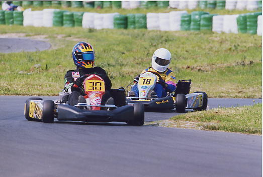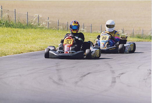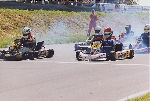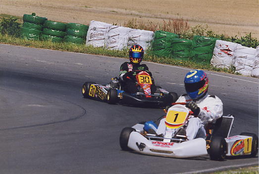Das erste Rennen lief dann sehr gut. Maik kam prima vom Start weg und war nach kurzer Zeit auf Position 4. Er konnte jetzt endlich die gleichen Zeiten wie die Spitze fahren. Falk Behm, Stefan Haak und Stefan Heidusche waren vor ihm. Nach einigen Runden hatte Maik Stefan Heidusche erreicht und es began ein harter und spannender Kampf um den 3.Platz. Leider mußte Maik sich am Ende mit dem 4.Platz zufrieden geben.