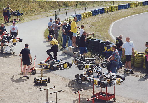 Kurz vor dem Zeittraining zogen wieder richtig schwarze Wolken auf. Aber Maiks Hoffnung es möge doch regnen, erfüllte sich nicht und er brauchte , mit einigen Unterbrechungen, in denen noch kleine Veränderungen vorgenommen wurden, bis zur 14 Runde bis er endlich eine passable Zeit zustande brachte, die ihm dann den 4. Startplatz sicherte.