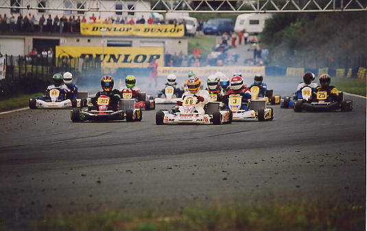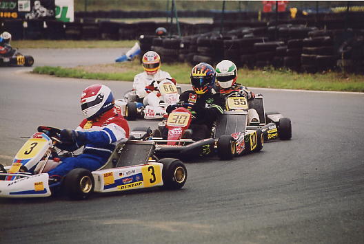 Den 2.Start hat Maik dann sauber hinbekommen und war nach der 1. Kurve auf Platz 2. Falk Behm dicht vor ihm. Maik war etwas schneller als Falk und lauerte natürlich auf seine Chance zum überholen. Das war nicht ganz einfach und von hinten kamen Stefan Haak und Ronny Böge immer näher heran. Bald mußte sich Maik gegen die Angriffe von Stefan wehren und Falk Behm konnte in aller Ruhe Sicherheitsabstand herausfahren.