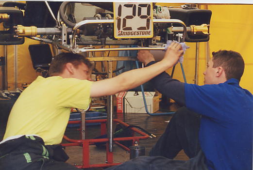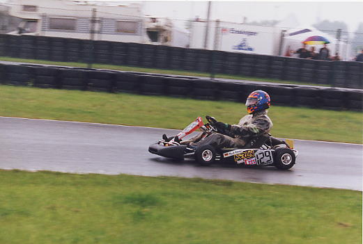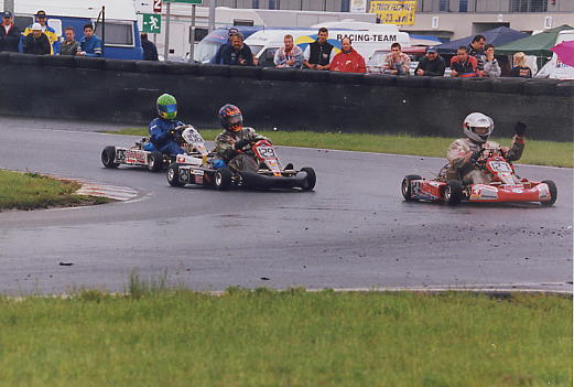 Leider gab es dann ein Problem mit der Bremse, die Reparatur benötigte viel Zeit und trotz einiger leichter Regenschauer trocknete die Strecke immer mehr ab. Als das Zeittraining dran war, funktionierte zwar die Bremse einigermaßen, aber es war keine Zeit mehr das Kart auf trocken abzustimmen.