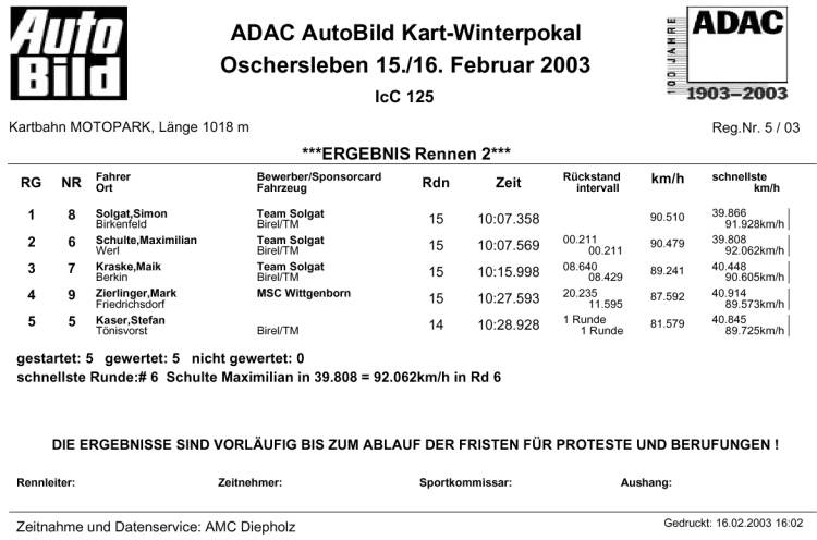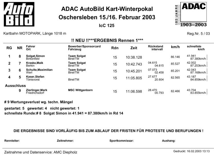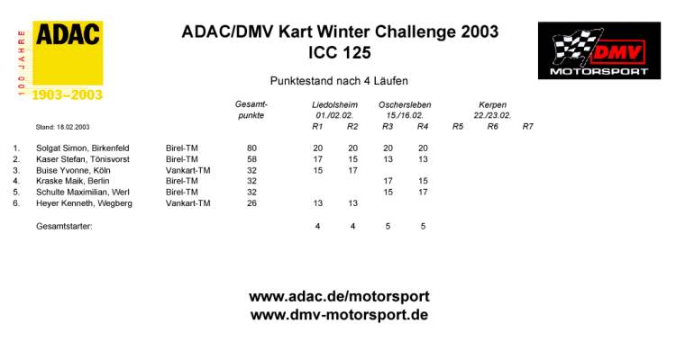 Deutsche ADAC/DMV Winter Challenge 2003Auto Bild Kart-Winterpokal Oschersleben 15.-16.02.2003