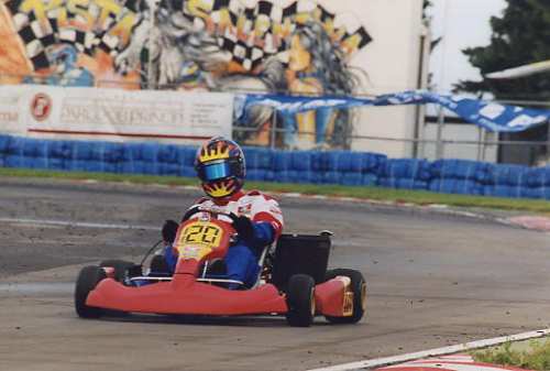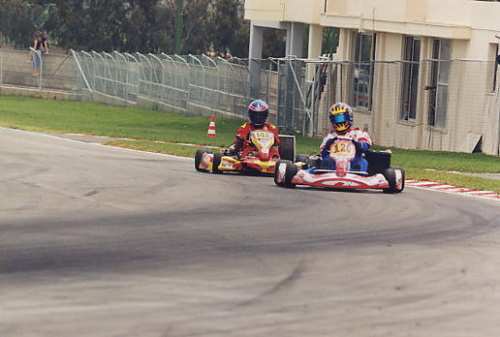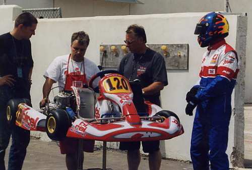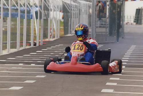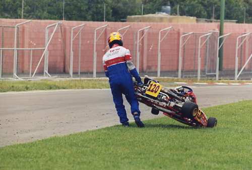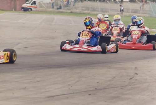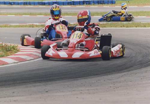 Im zweiten Heat hat sich Maik etwas besser angepaßt und kam ganz gut voran (14. Platz), aber bei einem Überholmanöver, kam es zu einem Unfall und Maiks Vorderfrond war komplett krumm.