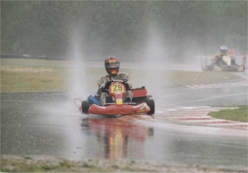 Maik fährt ja sehr gern im Regen und man konnte an den Zeiten sehen, daß er super klar kam. Bei jeder Trainingssitzung war er unter den fünf schnellsten zu finden.