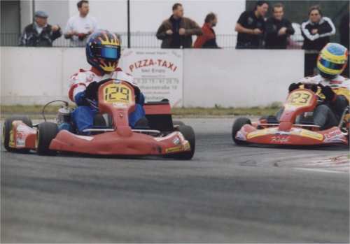 Der 2. Lauf sollte noch dramatischer werden. Maik mußte wieder von Platz 19 starten, kam aber diesmal sehr gut weg und konnte einige Plätze gut machen.