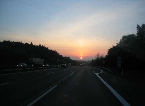 bei Sonnenaufgang, Montagmorgen, waren wir dann noch auf der Autobahn, kurz vor Berlin. zurück zum Anfang der Fotos
