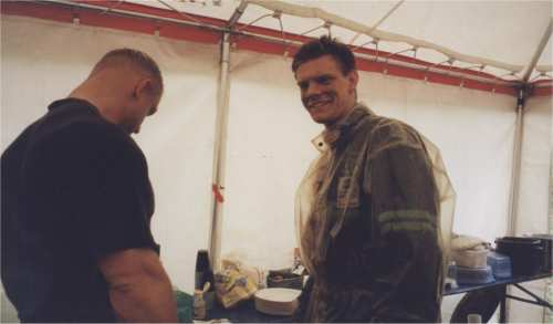 Schon in der Nacht begann es zu regnen und wir mußten sehr früh aufstehen, um alles auf Regen umzubauen.