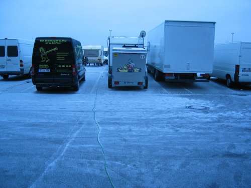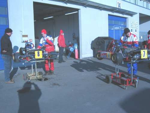 Um 13 Uhr , auf der Strecke wurde Salz gestreut, konnten wir dann zum ersten Mal rausfahren.Mit dieser schmierigen Pampe ist Maik nicht besonders gut klar gekommen und beim Zeittraining um 19.30Uhr unter Flutlicht kam dann der 3.Platz heraus.