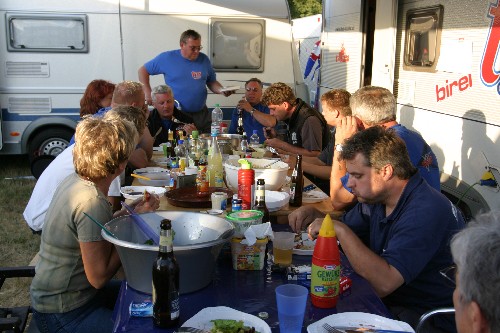 Als wir bester Laune am Dienstag an der Strecke eintrafen, mußten wir feststellen, daß wir erst ab Mittwoch 9 Uhr auf den Campinplatz durften. Fahrerlager war ja klar, aber Campingplatz.... na,ja