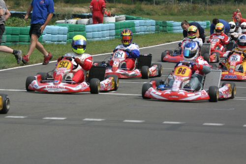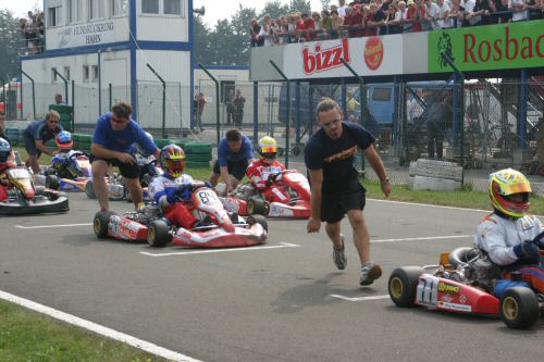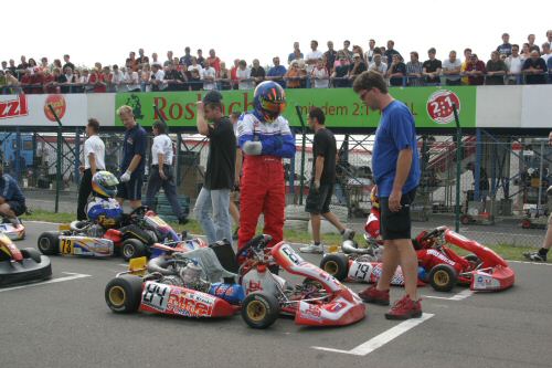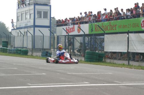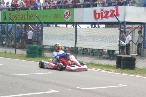 Maik konnte dann im nächsten Rennen von 7 starten. Diesmal fuhr Maik auf seiner Startposition in die erste Kurve. Nach einigen Runden konnten wir Zuschauer beobachten, daß Maik zeitweise etwas zurück fiehl, sich wieder herankämpfte und wieder zurück fiehl....