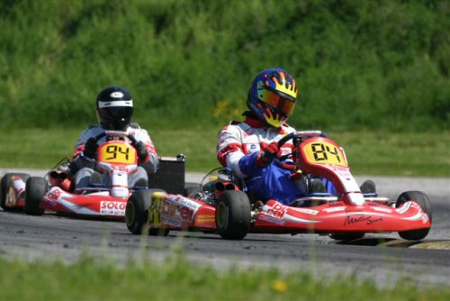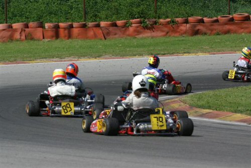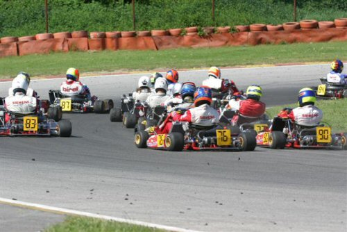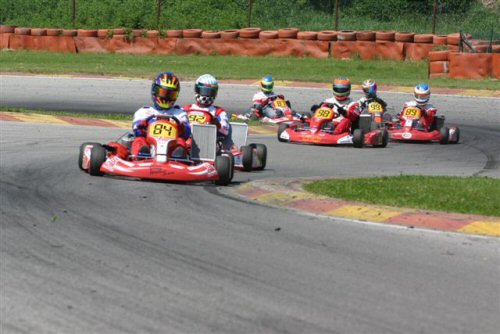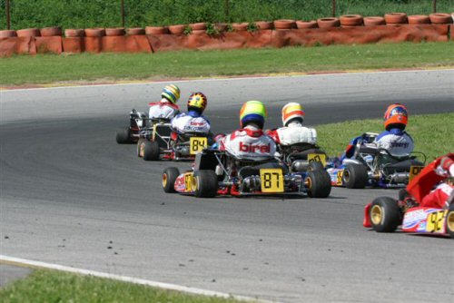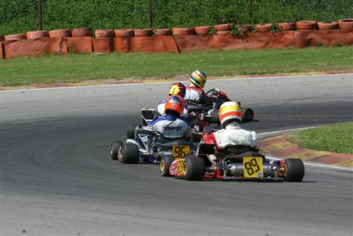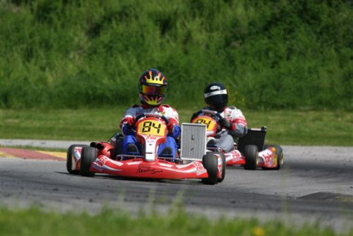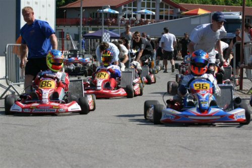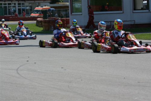 Der erste Start klappte gut und Maik war nach kurzem Gerangel in der ersten Schikane auf dem zweiten Platz, hinter Simon. Die beiden konnten sich ziemlich schnell vom Rest des Feldes absetzen und spulten in der brütenden Hitze ziemlich ungefährdet ihre Runden ab.