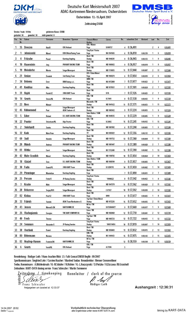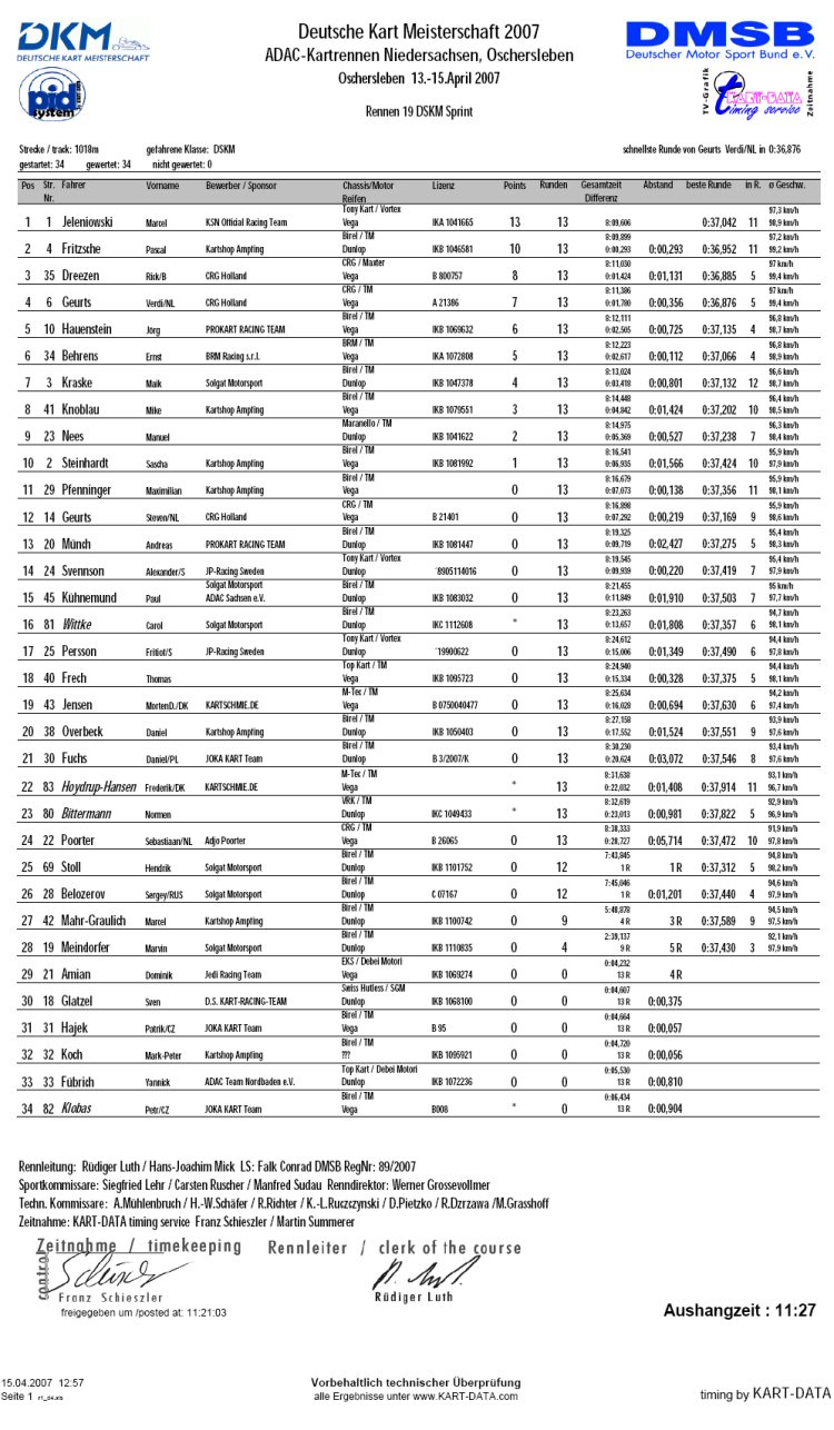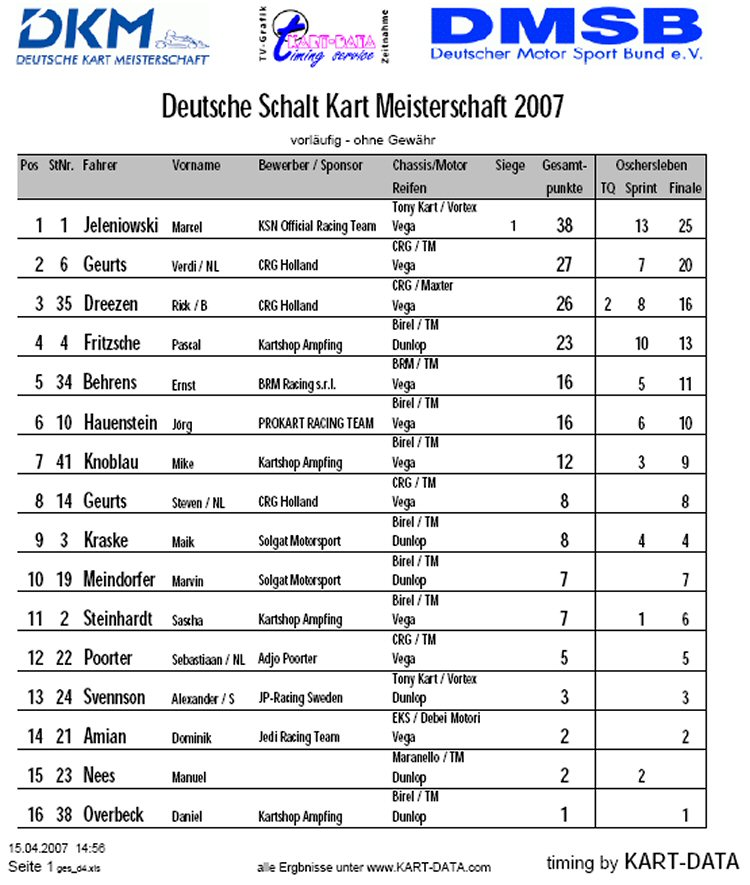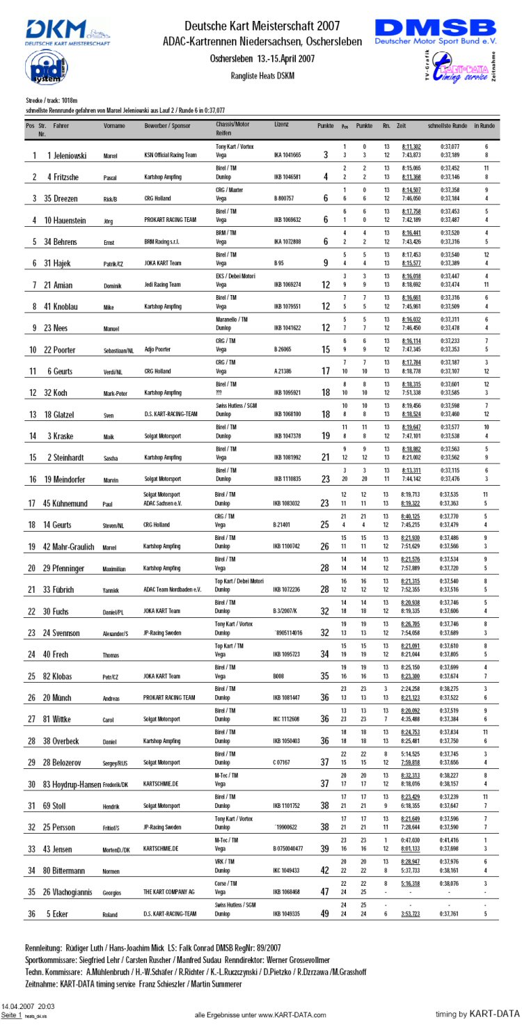 1. Lauf DSKM Oschersleben 13.-15.04.2007
