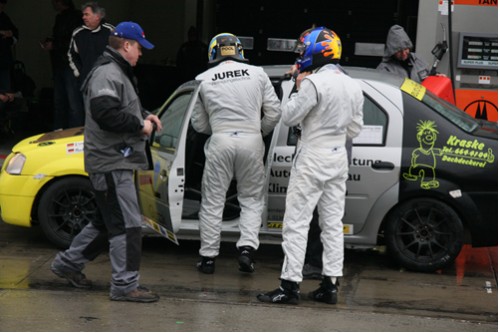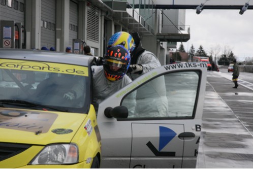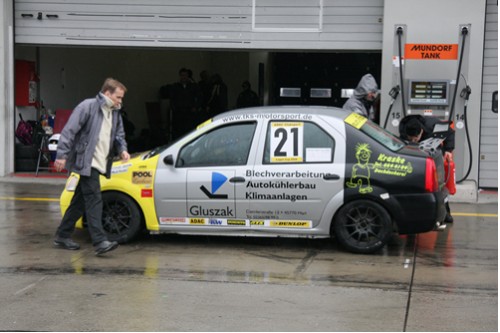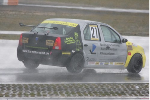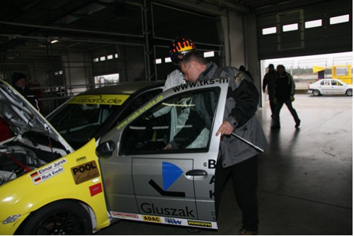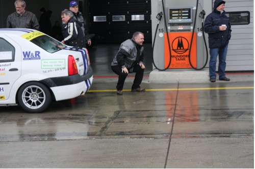 Auch wärend des Trainings trocknete die Strecke immer nur zeitweise etwas ab . Elmar konnte dann im Qualifying den 2. Startplatz herausfahren.