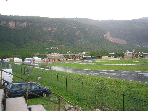 Die gesamte Strecke und dasFahrerlager stand unter Wasser und die Rennen wurden abgebrochen.